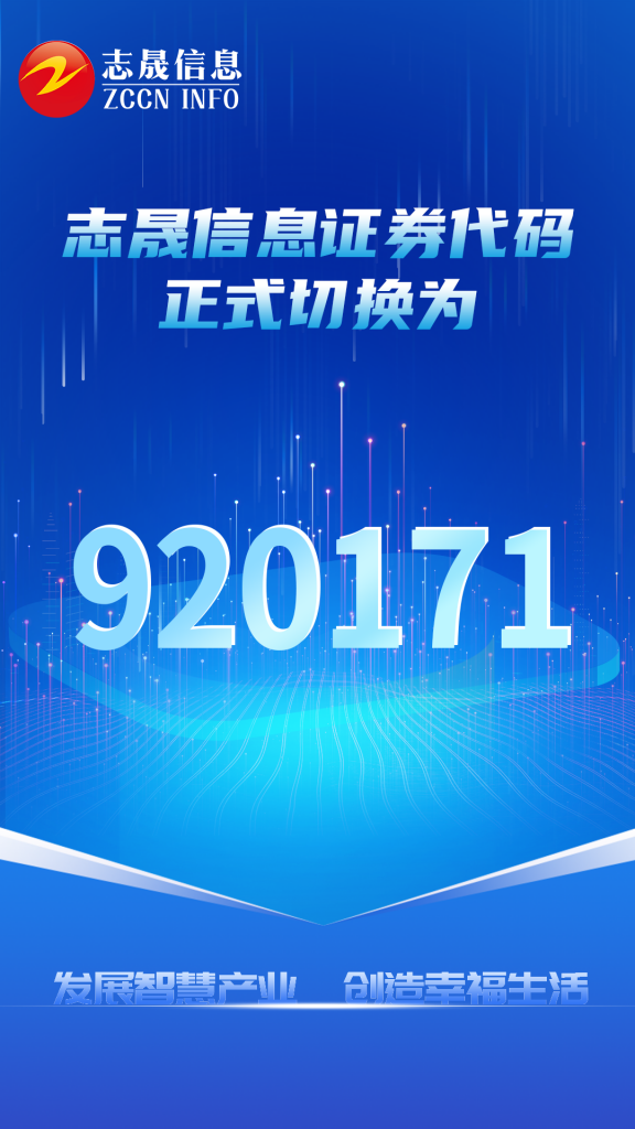 2025年10月9日起,河北志晟信息技术股份有限公司(证券简称:志晟信息)正式启用北京证券交易所“920”专属代码号段,证券代码由原 “832171”切换为“920171”,证券简称不变。